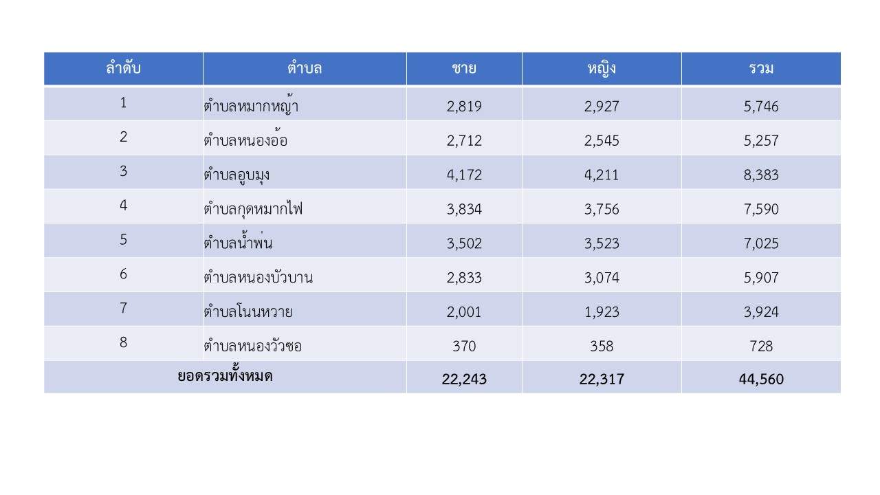 จำนวนประชากร เขตพื้นที่อำเภอหนองวัวซอ